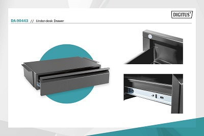 Výsuvná zásuvka pod psací stůl pro individuální umístění na pracovišti - perfektní doplněk k vašemu výškově nastavitelnému psacímu stolu. Vytvořte další úložný prostor. Maximální nosnost je 5 kg.
