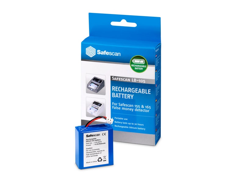 Lithiová dobíjecí baterie pro detektor padělků Safescan 155i, 165i, 155-S a 185-S s výdrží až 30 h na jedno nabití.