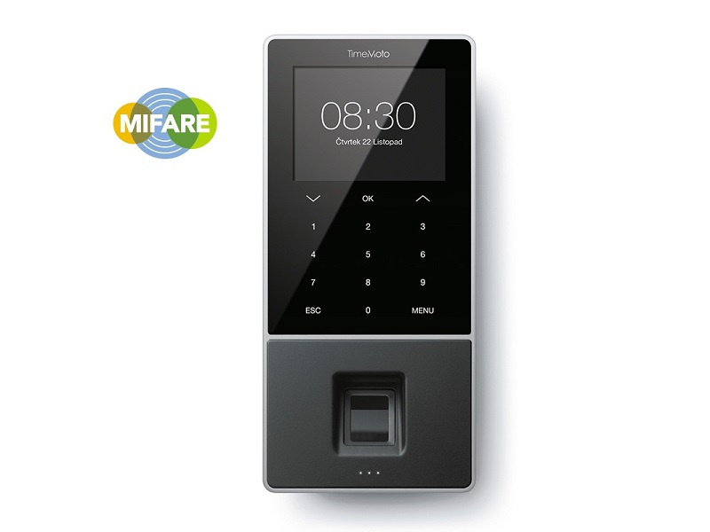 Docházkový systém TimeMoto na RFID kartu nebo otisk prstu, který spojuje nejnovější pokročilou identifikační technologii. Kompatibilní se systémy MIFARE a DESfire.