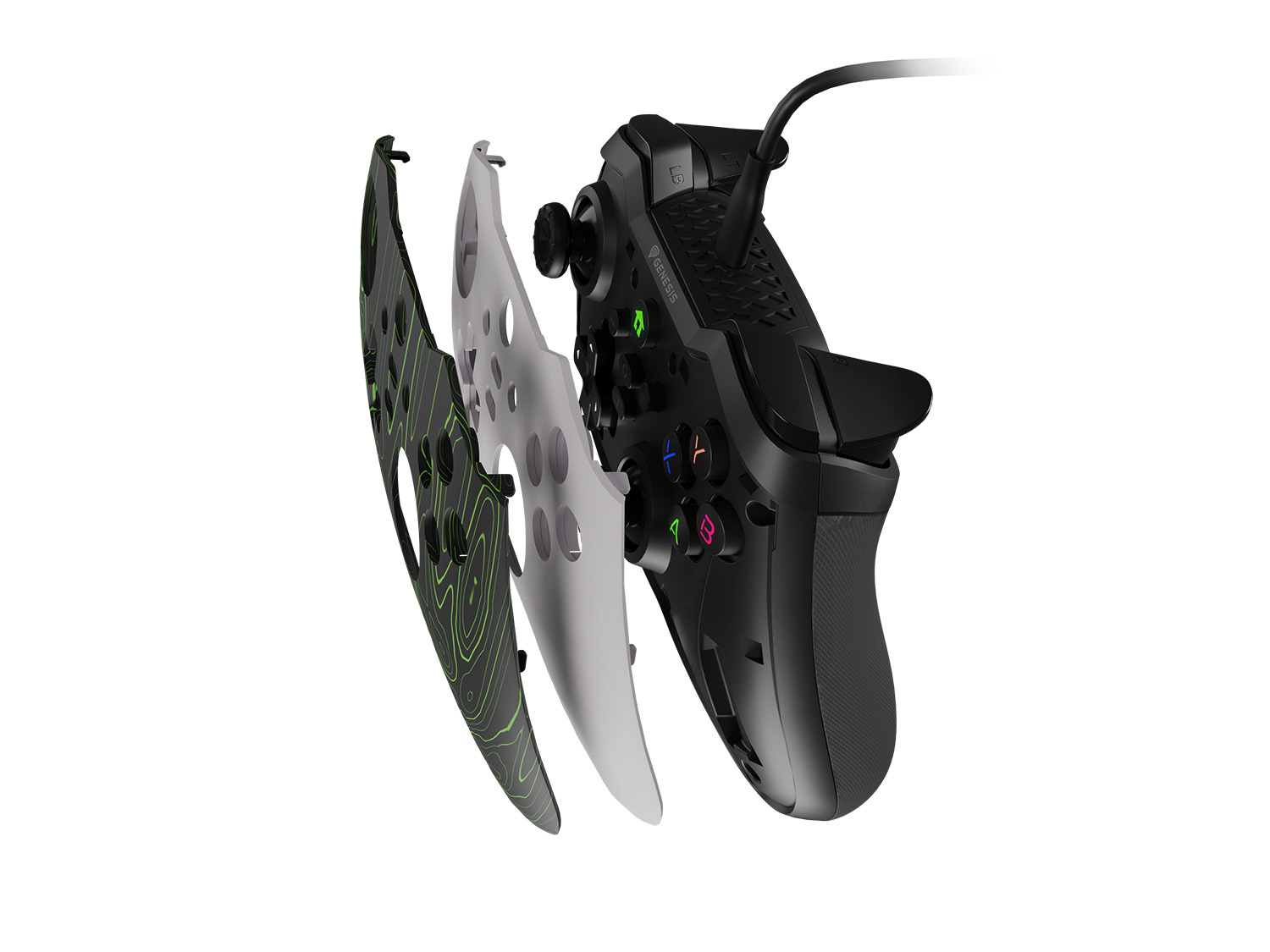 Rozbijte rutinu tradičních ovladačů. Pomocí vyměnitelného předního panelu si můžete vzhled Manganu 300 přizpůsobit svému stylu. Kdykoli vyměňte barevný kryt (k dispozici v černé, červené nebo bílé barvě) za jeho alternativní verzi, kterou najdete v krabici.