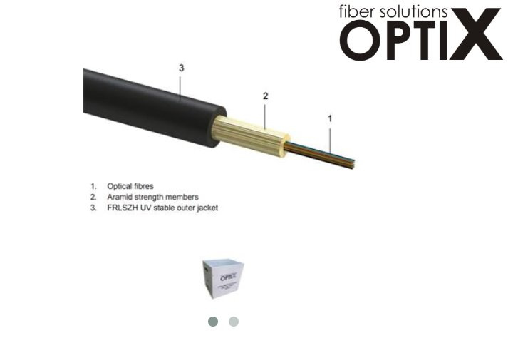 Optický singlemódový 16 vláknový univerzální (vnitřní/venkovní) samonosný kabel DROP FTTx v návinu 1000 m na cívce. Použitá jsou vlákna G.657A. Konstrukce kabelu dovoluje poloměr ohybu až 1,5 cm (bez zátěže), 3 cm (při zátěži), což umožňuje s kabelem pracovat jako s běžným UTP kabelem.