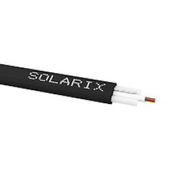 Venkovní optický samonosný Flat DROP kabel Solarix ploché konstrukce s HDPE pláštěm a třídou reakce na oheň Fca 12 vláken SM 9/125. Venkovní optický samonosný Flat DROP kabel Solarix SXKO-FLAT-DROP-12-OS-HDPE s třídou reakce na oheň Fca. Kabel je ploché konstrukce a je ideální pro nadzemní instalace s převěsy až do 80m při použití kotev pro ploché kabely, Kabel je také možno instalovat zatažením do HDPE trubek . Samotná vlákna typu G.657.A1 jsou uložena v centrální trubičce plněné gelem, díky čemuž jsou chráněna před vniknutím vody. Kabel obsahuje dva FRP tahové členy uvnitř pláště pro zvýšení mechanické odolnosti. Optický kabel neobsahuje žádné kovové prvky a je plně dielektrický.