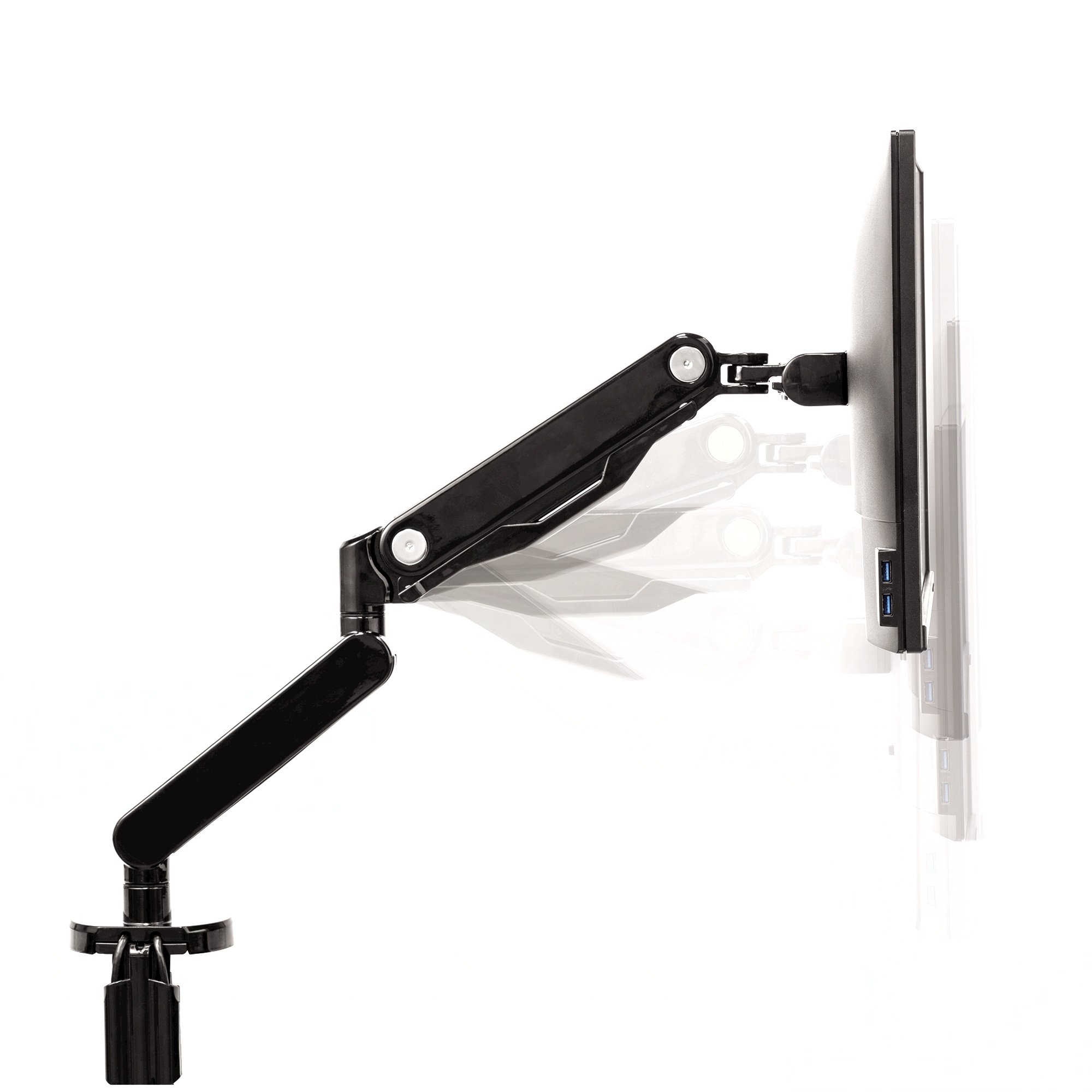 Držák monitoru s plynovou vzpěrou. Výborná manipulovatelnost díky plynulému odporu vzpěry umožňující jednoduše nastavit libovolnou pozici ramene v rámci povolených intervalů, a to zcela bez použití jakýchkoliv nástrojů.