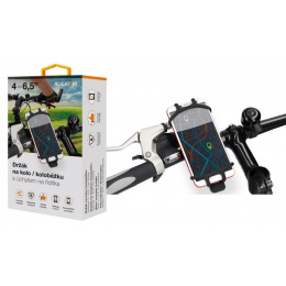 Univerzální držák na řídítka kola/koloběžky nebo kočárku z flexibilního gumového materiálu. Upevnění mobilního telefonu pomocí napínacích a zároveň šetrných gumiček. Spolehlivé a bezpečné uchycení mobilního telefonu ve velikosti 4-6,5“. Decentní minimalistické provedení, které nezabírá na řídítkách tolik místa. Dalšími hlavními přednostmi jsou například sportovní design nebo systém rychlofixace.
