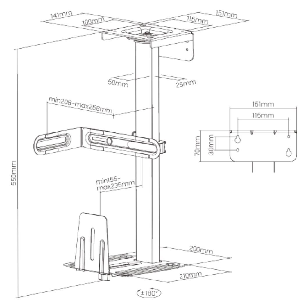 Držák na PC Brateck CPB-25 pod stolní desku kompatibilní s desktopovými počítači o šířce 155-235 mm, s nosností až 30 kg.