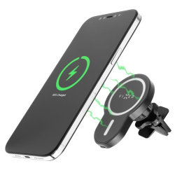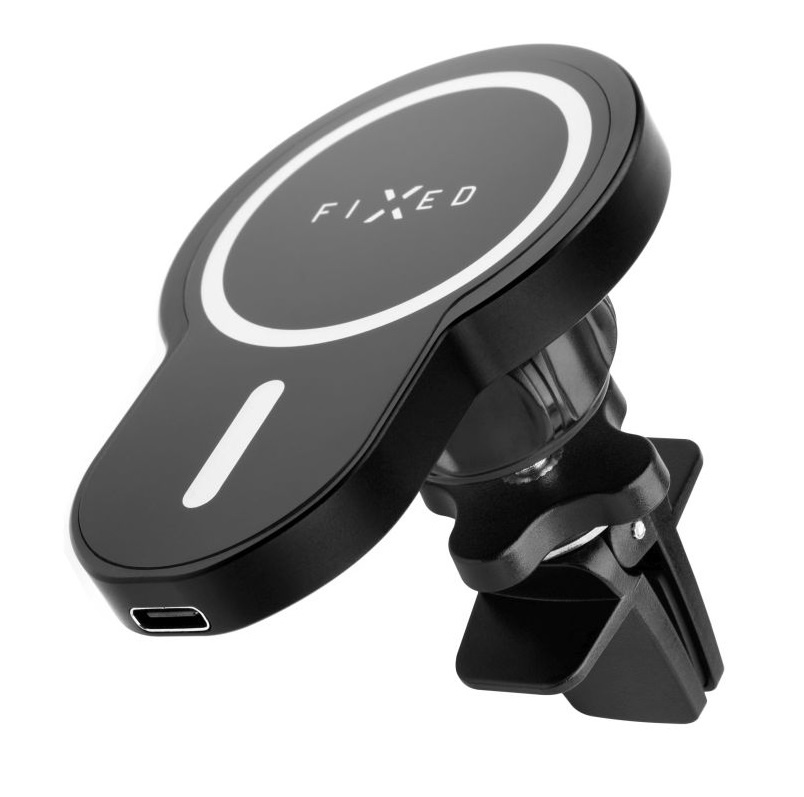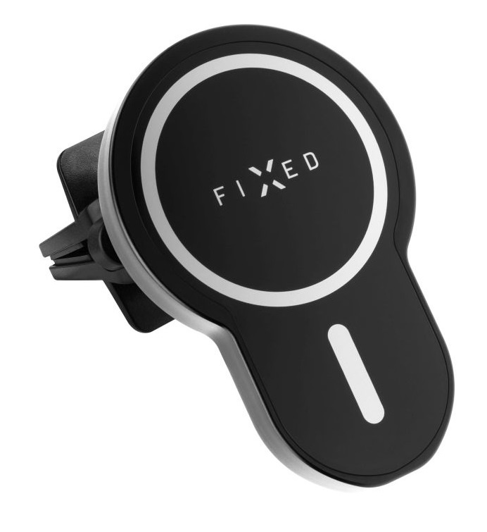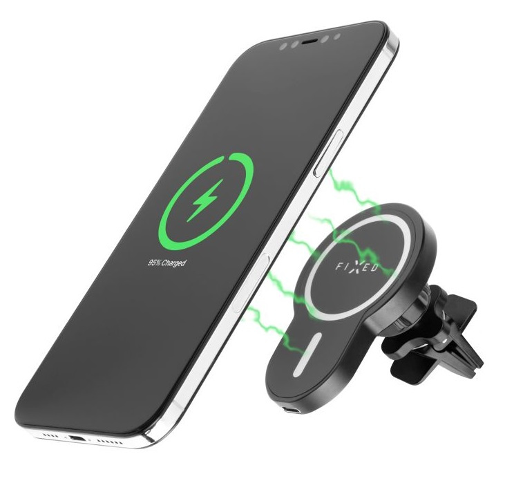Držák FIXED MagClick vyvinutý přímo pro nejnovější Apple iPhone s funkcí MagSafe vám umožní mít telefon v autě pěkně na očích a zároveň ho pohodlně dobíjet během jízdy. Díky integrovaným magnetům stačí jen přiložit telefon k držáku a pomocí MagSafe se okamžitě sám zajistí. Drží bezpečně a bez problémů vydrží všechny otřesy způsobené jízdou. Pro rychlé nabíjení vašeho iPhonu je držák MagClick vybaven vysoce výkonnou cívkou s výkonem 7,5W a až 15W pro ostatní chytré telefony, dokáže tak doplnit energii v co nejkratším čase. Držák je určen pro uchycení pomocí pevných kleští do ventilační mřížky. Pomocí otočného kloubu si nastavíte telefon do ideálního úhlu tak, aby byl v případě potřeby pěkně na očích. Minimalistický a moderní design držáku nepřekáží na palubní desce a skvěle zapadne do interiéru vašeho vozu. S držákem FIXED MagClick bude vaše jízda s telefonem v autě pohodlnější a hlavně bezpečnější než kdy dříve.