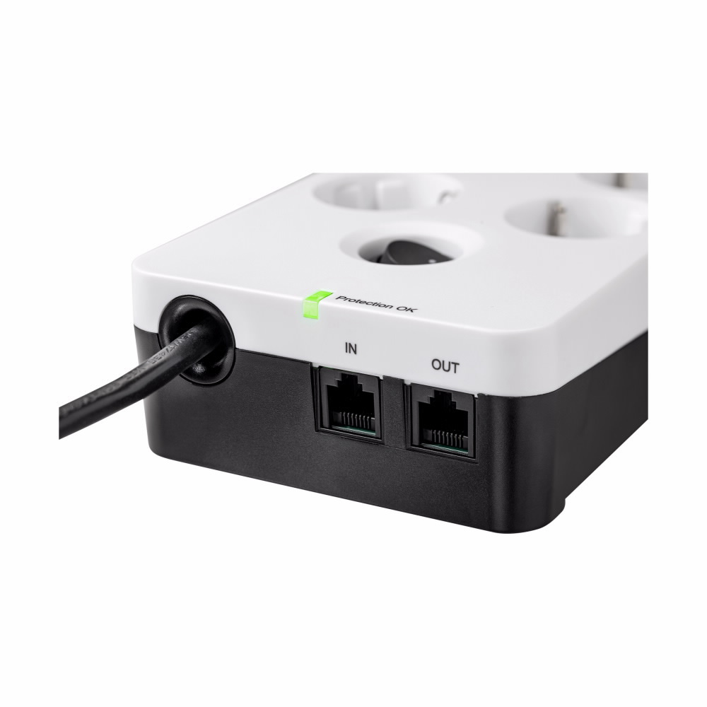 Špičkové zařízení s několika zásuvkami a přepěťovou ochranou v provedení s 8 FR zásuvkami, splňuje normy IEC 61643-11, ochrana telefonní i internetové linky, 2 USB porty
