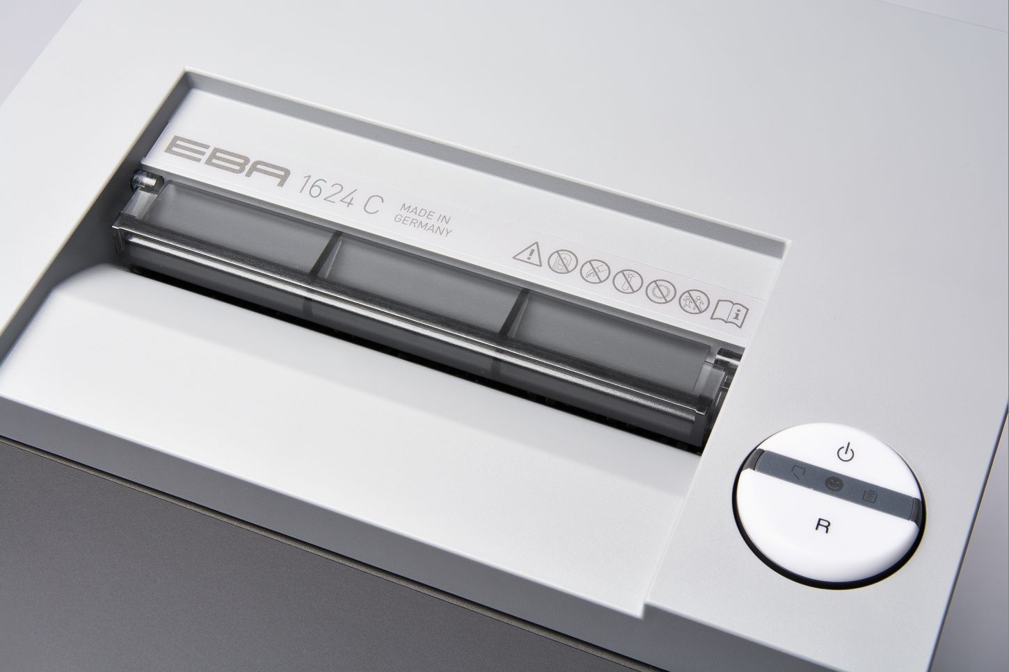 Komfortní obsluha a vysoký výkon jsou vlastnosti modelové řady EBA 1624. Výkonný skartovač se vstupní šířkou 240 mm pro intenzivní využití. Nově integrována světelná indikace zátěže stroje. Bezpečnost obsluhy zajišťují patentované bezpečností a ochranné funkce "SPS" (Safety Protection System).