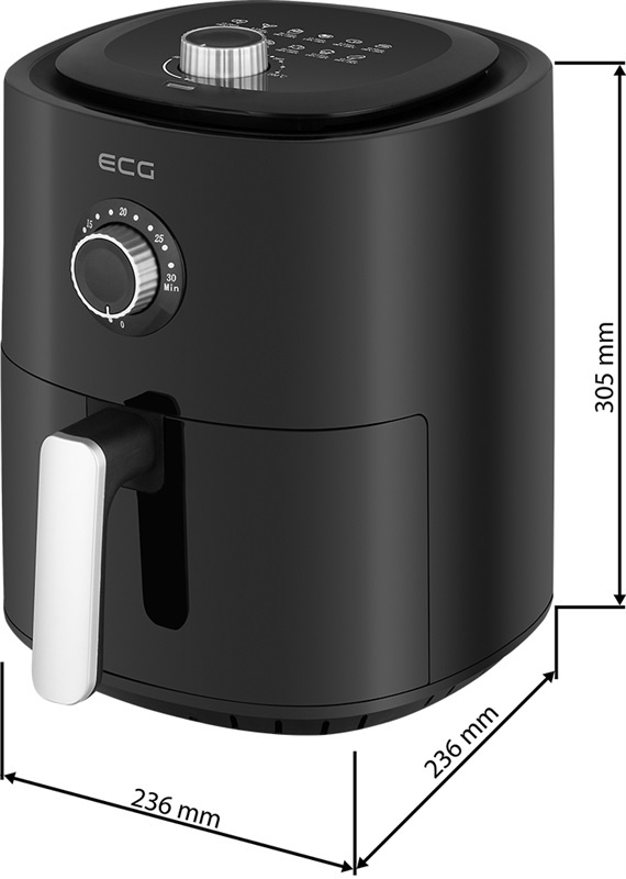 Kompaktní design s rozměry 32,8 × 31,7 × 25 cm a nadčasové provedení s černo-stříbrnou povrchovou úpravou. To jsou vlastnosti, které dělají z této horkovzdušné fritézy spotřebič, jemuž zkrátka nelze odolat. V kuchyni vám nezabere zbytečně moc místa, přičemž díky svému elegantnímu vzhledu skvěle zapadne mezi ostatní spotřebiče a do jakéhokoliv interiéru.