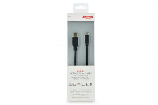 Edfnet Připojovací kabel USB typu C, typ C na A M/M, 1,0 m, 3A, 5 GB, verze 3.0, bl