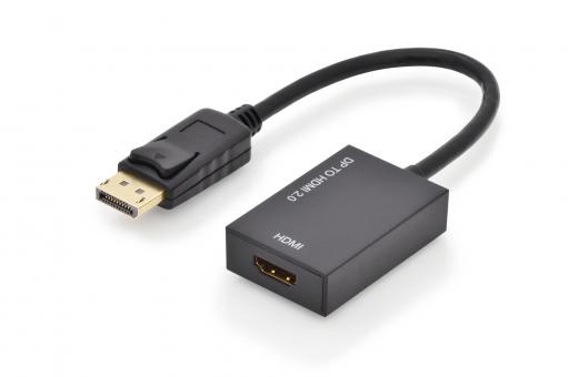Ednet kabelový adaptér DisplayPort, DP samec - HDMI 2.0 typ A samice, 0,2 m, se zámkem, aktivní, CE, zlato, bl