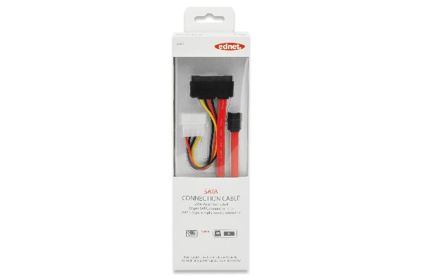 Tento interní datový a napájecí kabel je vhodný pro současné připojení zařízení Serial-ATA, například pevných disků, disků CD a DVD a Blu ray, k základní desce ak napájení počítače.