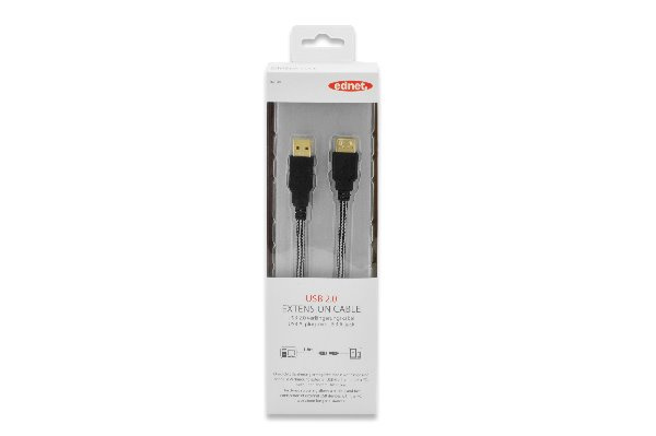 Ednet Prodlužovací kabel USB 2.0, typ A M / F, 1,8 m, bavlna, zlato, bl