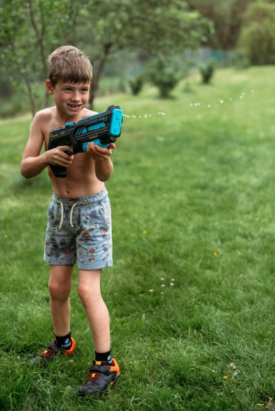 Elektrická vodní pistole pro děti i dospěléMáme pro vás něco, co vás v horkých letních dnech nejenom ochladí, ale také zabaví. S elektrickými vodními pistolemi dostanou letní bitvy úplně jiný rozměr. Vodní pistole zabaví jak děti, tak i dospělé. Navíc nejde jen o zábavu, děti si při hře pilují týmovou spolupráci, úhybné manévry a vymýšlení strategie.Vodní pistole s automatickým nabíjenímPistole je vyrobená z lehkého, ale velmi odolného materiálu. Má nádobku na vodu s objemem 200 ml, která je snadno plnitelná. Dosah pistole je až 10 m, což umožňuje překvapit nepřítele na velkou vzdálenost. Pistole sama automaticky nasává vodu, nemusíte ji tedy nijak nabíjet. Střelbu doprovází zvukové efekty. Pokud by se vybil akumulátor, který je v pistoli zabudovaný, můžete v bitvě pokračovat klasicky ručním stříkáním.Technické specifikace:Délka: 45 cmŠířka: 5,5 cmVýška: 13,5 cmVýška rukojeti: 18,5 cmHmotnost: 534 gObjem vodní nádrže : 200 mlAkumulátor 7,4 V 500 mAh  Obsah balení: Elektrická vodní pistole  Akumulátor 7,4 V 500 mAh Li-ion USB nabíječka Manuál Technické parametry:  Délka : 45  Šířka : 5.5  Výška : 13.5  Hmotnost: 534  Napětí akumulátoru: 7.4  Kapacita akumulátoru: 500  Typ nabíječky : USB  Barva: černá