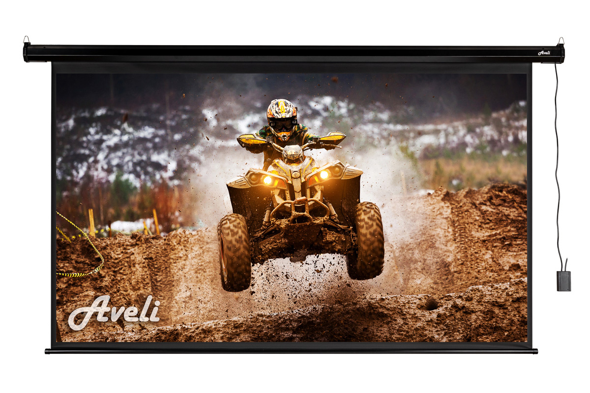 Elektrické projekční plátno AVELI, 204x115 (16:9) 92", černý tubus
