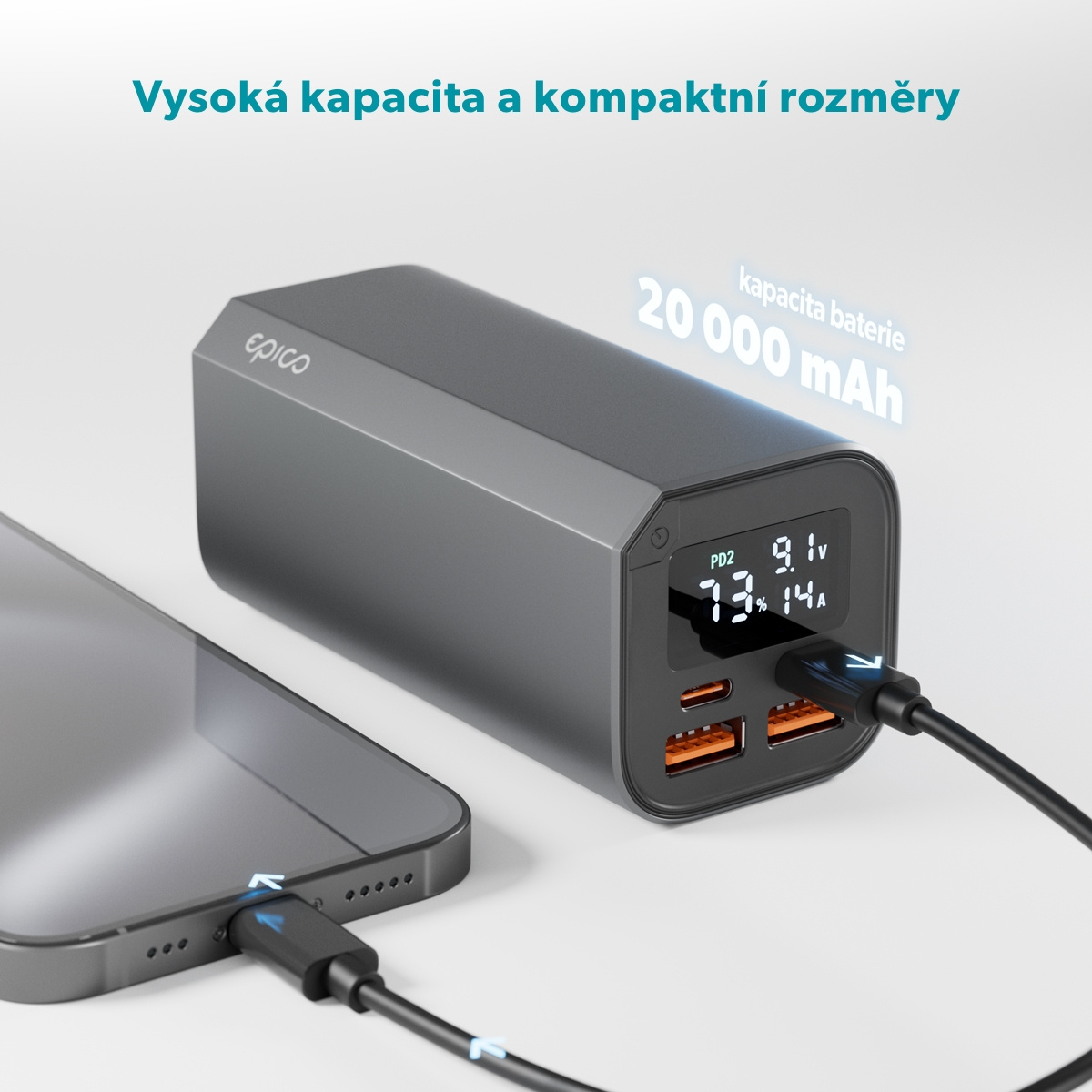 Epico Alu Power Banka PD 100W - 20 000mAh - šedá
