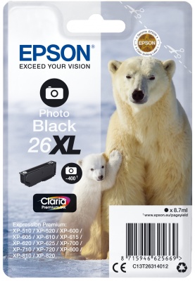 Epson Singlepack Photo Black 26XL Claria Prem Ink