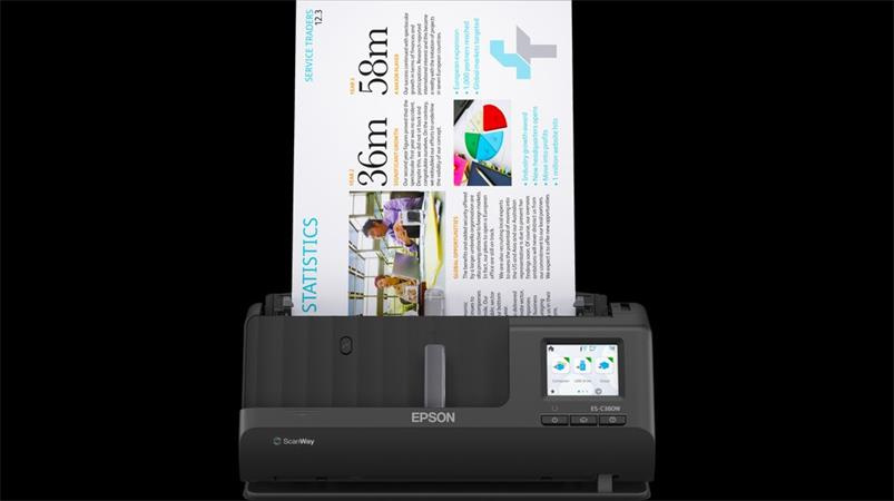 EPSON skener ES-C380W - A4/600x600dpi/USB/Wi-Fi/LAN/DADF