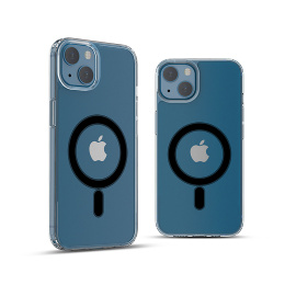 Transparentní ochranný kryt kompatibilní s MagSafe, který poskytne ochranu proti pádům, nárazům, poškrábání a nečistotám. Edice s černě provedeným MagSafe okruhem.
