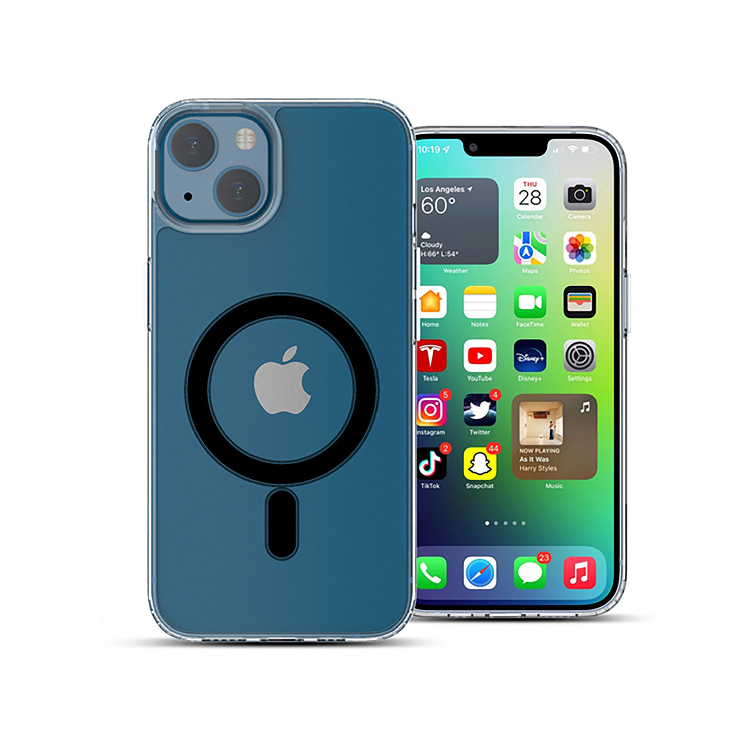 Transparentní ochranný kryt kompatibilní s MagSafe, který poskytne ochranu proti pádům, nárazům, poškrábání a nečistotám. Edice s černě provedeným MagSafe okruhem.