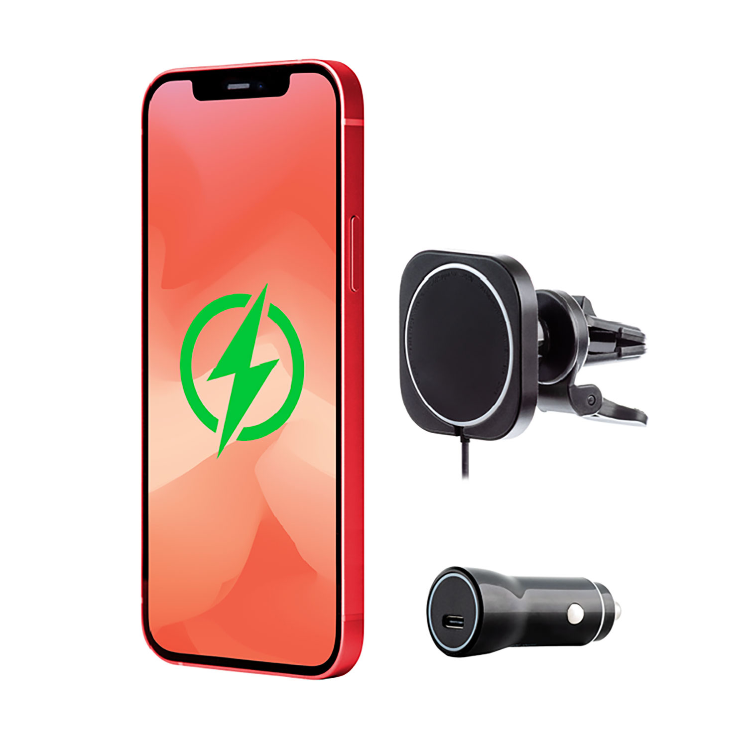 Bezdrátová nabíječka s integrovaným USB-C kabelem a výkonem 15W. Součástí balení je držák do ventilace automobilu a nabíječka do zapalovače s výkonem až 20W. Nabíječka je kompatibilní s Apple MagSafe. Silné svorky zajistí, že držák bude držet přesně tam, kde potřebujete a díky pevné konstrukci udrží i rozměrnější zařízení jako ku příkladu Apple iPhone 13 Pro Max. Barva: černá