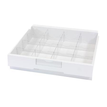 Internal Dimensions: 2.5"H x 12"W x 10.5"D (63.5 x 305 x 267 mm)—includes dividers to configure up to 16 compartments