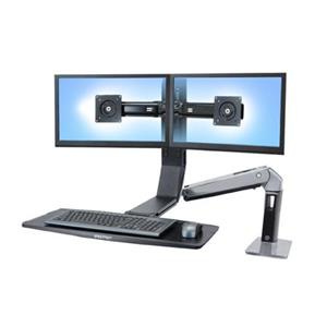 Description: WorkFit-A, Dual Monitor Sit-Stand Workstation (polished aluminum/black)