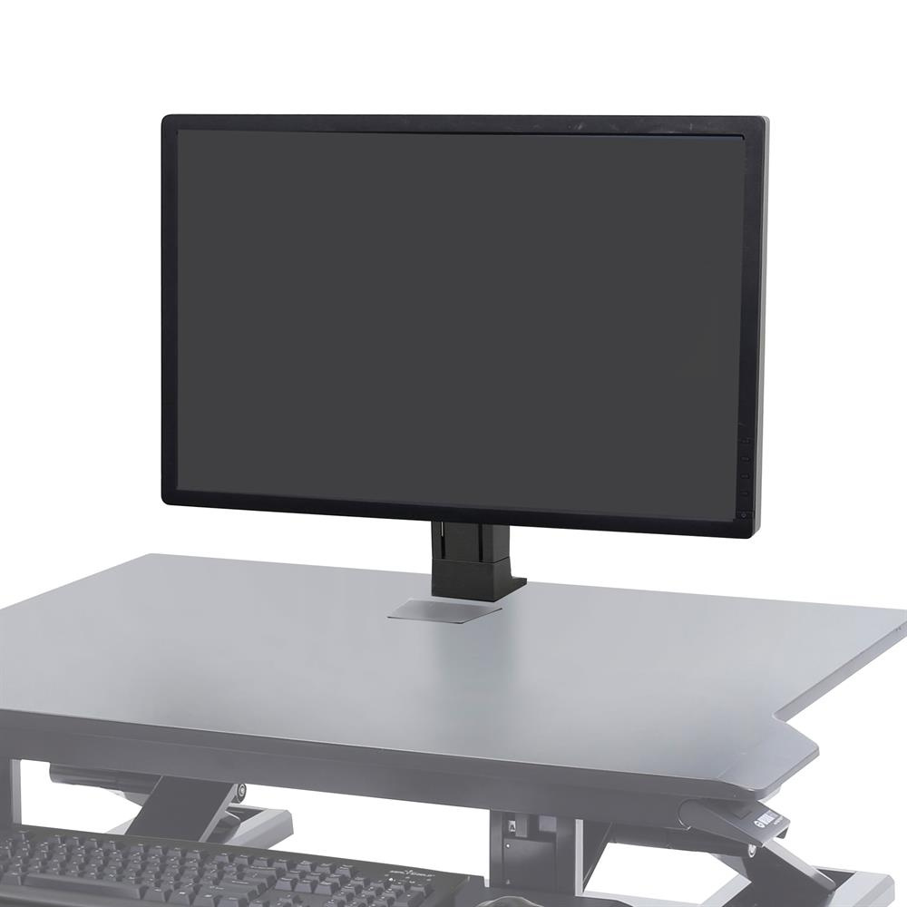 Upgrade your WorkFit to hold a larger LCD above the desktop. Offers 5" (13 cm) of height adjustment and tilt. Easily lift and tilt the screen to proper height for unsurpassed ergonomic comfort.