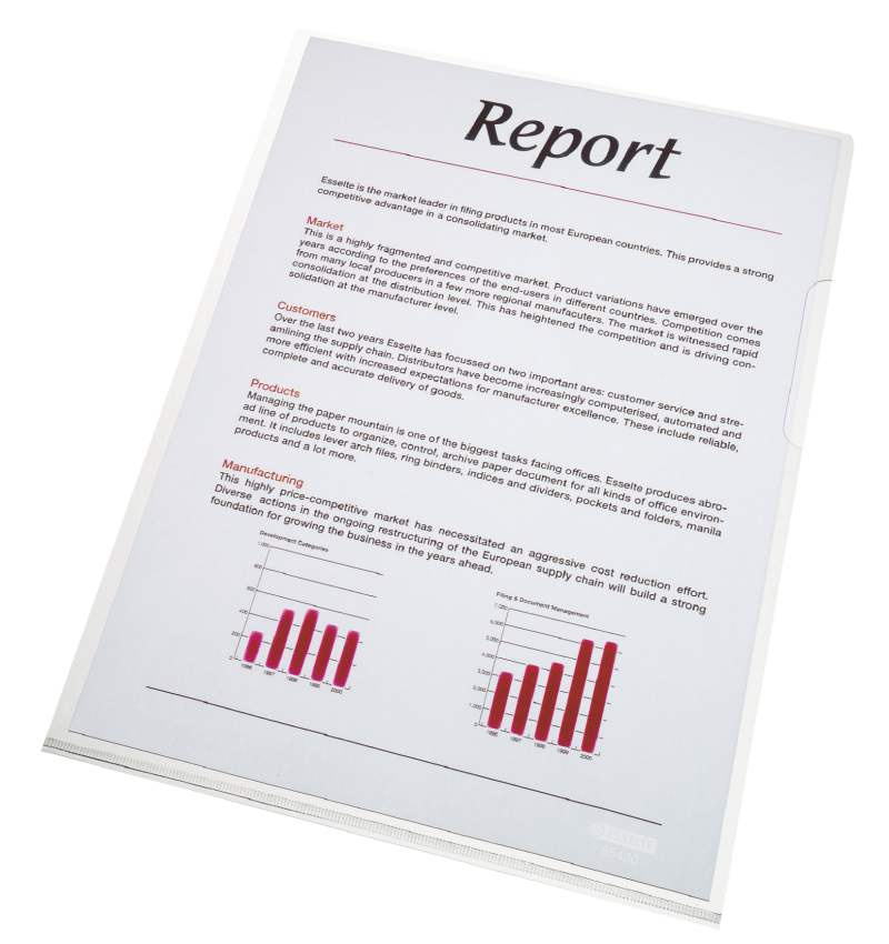 Silné a pevné desky typu "L" pro velmi časté a reprezentativní použití. Ideální pro úschovu a přenos důležitých dokumentů. Velmi pevný materiál chrání vložené dokumenty před poničením.