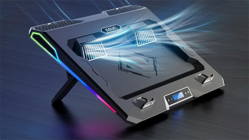 EVOLVEO Ania 10 RGB disponuje dvojící kvalitních 45mm "blower" ventilátorů. Proud vzduchu těchto vysokorychlostních ventilátorů je směrován na zadní spodní část a na zadní hranu notebooku. Rychlost ventilátorů může dosáhnout až 6000RMP a v případě potřeby je lze regulovat na nižší rychlosti.