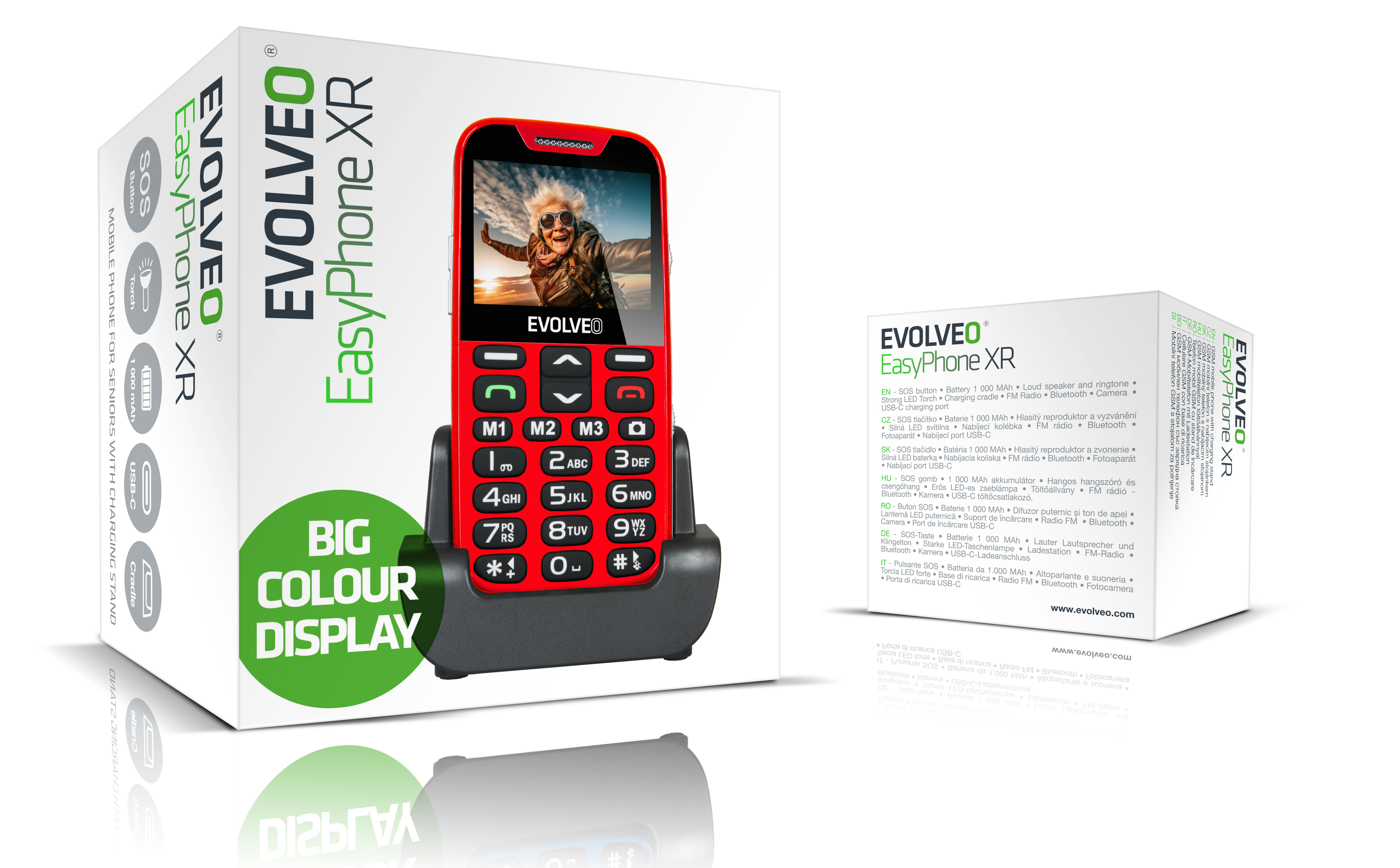 Ovládání mobilního telefonu EVOLVEO EasyPhone XR bylo maximálně zjednodušeno, aby vyhovovalo potřebám seniorů a dětí. Velká čísla a písmena jsou výborně čitelná na velkém barevném 2.3" TFT displeji, což zajišťuje snadnou navigaci a čitelnost informací. Jednotlivá tlačítka klávesnice jsou oddělena, což usnadňuje psaní SMS zpráv a zadávání telefonních čísel. Pro ještě větší pohodlí při používání telefonu jsou k dispozici 3 vyhrazená tlačítka na přední straně telefonu, která umožňují rychlý přístup k důležitým funkcím, jako je fotoaparát.