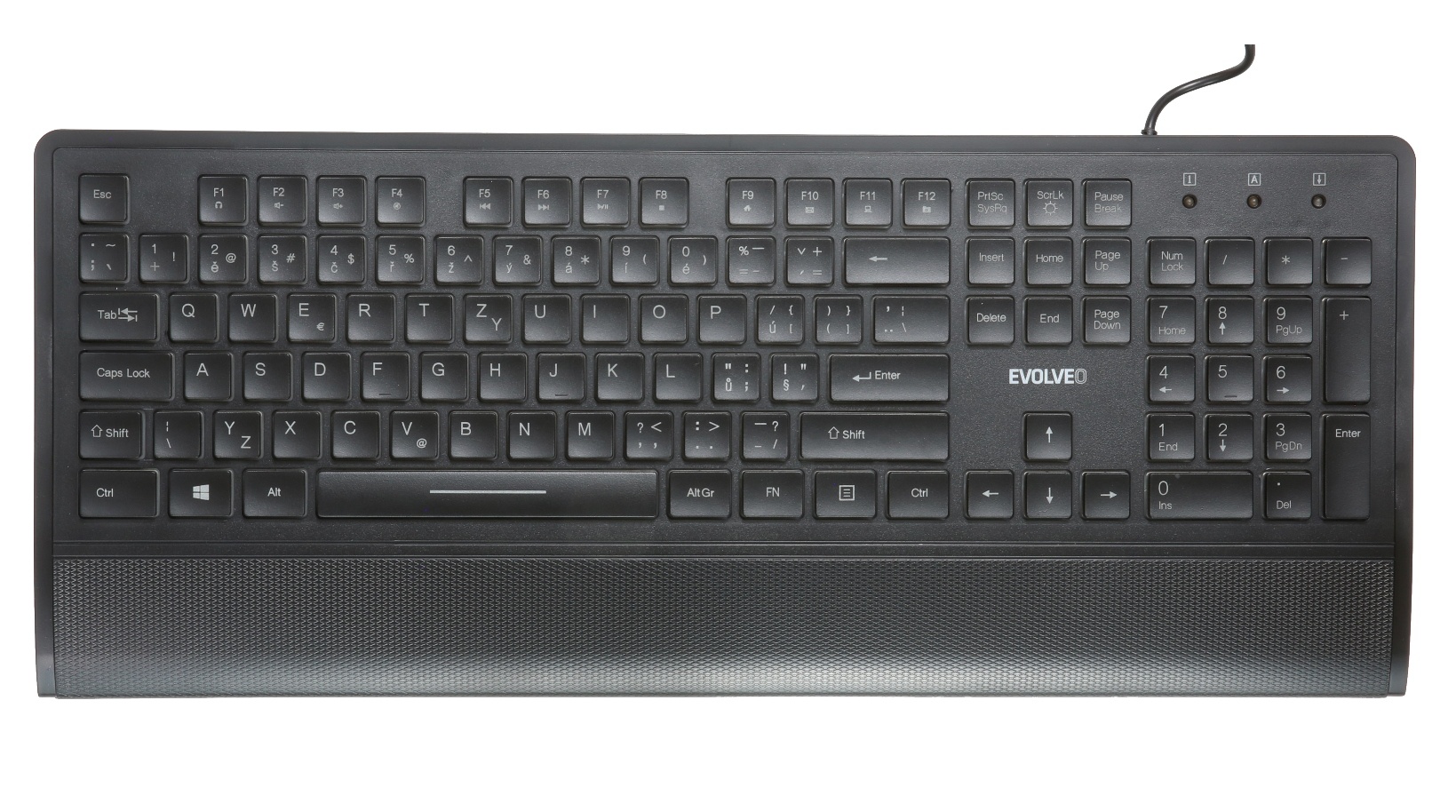 Velmi elegantní podsvícená klávesnice s širokou podložkou pro ruce.