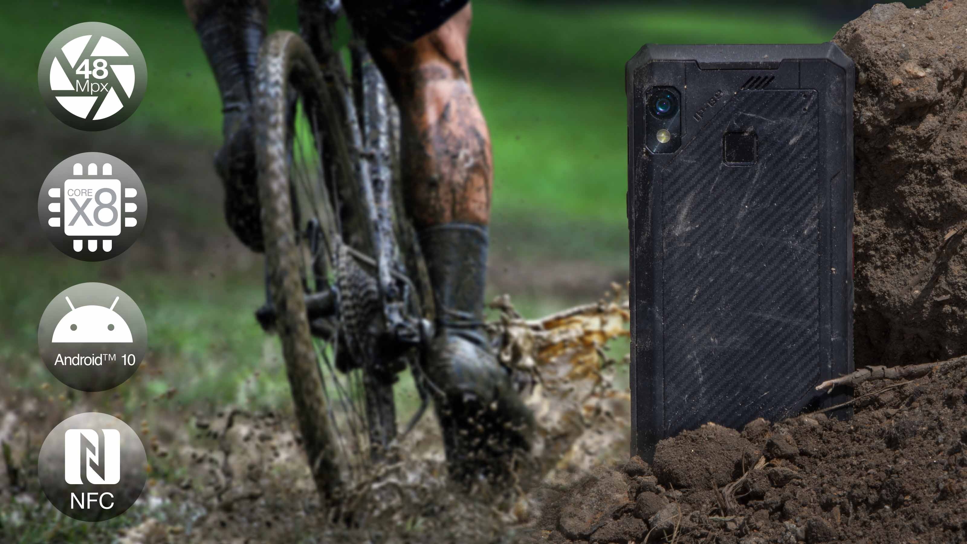 • špičkový 48 Mpx fotoaparát s automatickým ostřením a LED bleskem • IPS 6.2" HD+ displej s kapkovitým výřezem a automatickou regulací jasu • osmijádrový 64bitový procesor 2.0 GHz • podpora až osmi eSIM profilů • podpora technologie NFC • čtečka otisku prstů a odemykání tváří • SOS tlačítko, programovatelné tlačítko, notifikační dioda • elegantní tvar s certifikací IP69 • operační systém Android 10.0