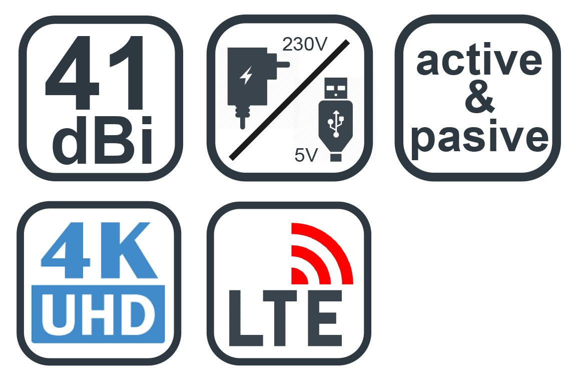 • Zesilovač, zisk 41 dBi, filtr LTE,