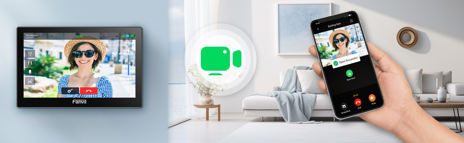 Zůstaňte informováni o návštěvnících kdykoli a kdekoli. Díky videohovorům v reálném čase na vnitřní stanici a aplikaci Fanvil Link můžete odemknout dveře klepnutím a bez námahy komunikovat. Bezpečnost vždy po ruce.