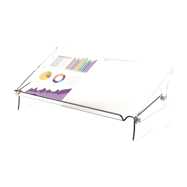 • série Clarity ™ • minimalistický čirý design vhodný do jakéhokoliv prostoru • 6 pozic nastavení výšky základny• výškové nastavení: 160 mm, 175 mm, 190 mm, 205 mm, 220 mm, 235 mm.• úhel náklonu mezi 17 ° - 39 ° • určeno pro formát papíru až A3 • čelní profilovaná hrana zabraňuje sklouznutí těžších dokumentů • barva čirá • materiál tvrzený akryl• nosnost 6 kg • rozměry (š x v x h) 536 x 160 x 278 mm