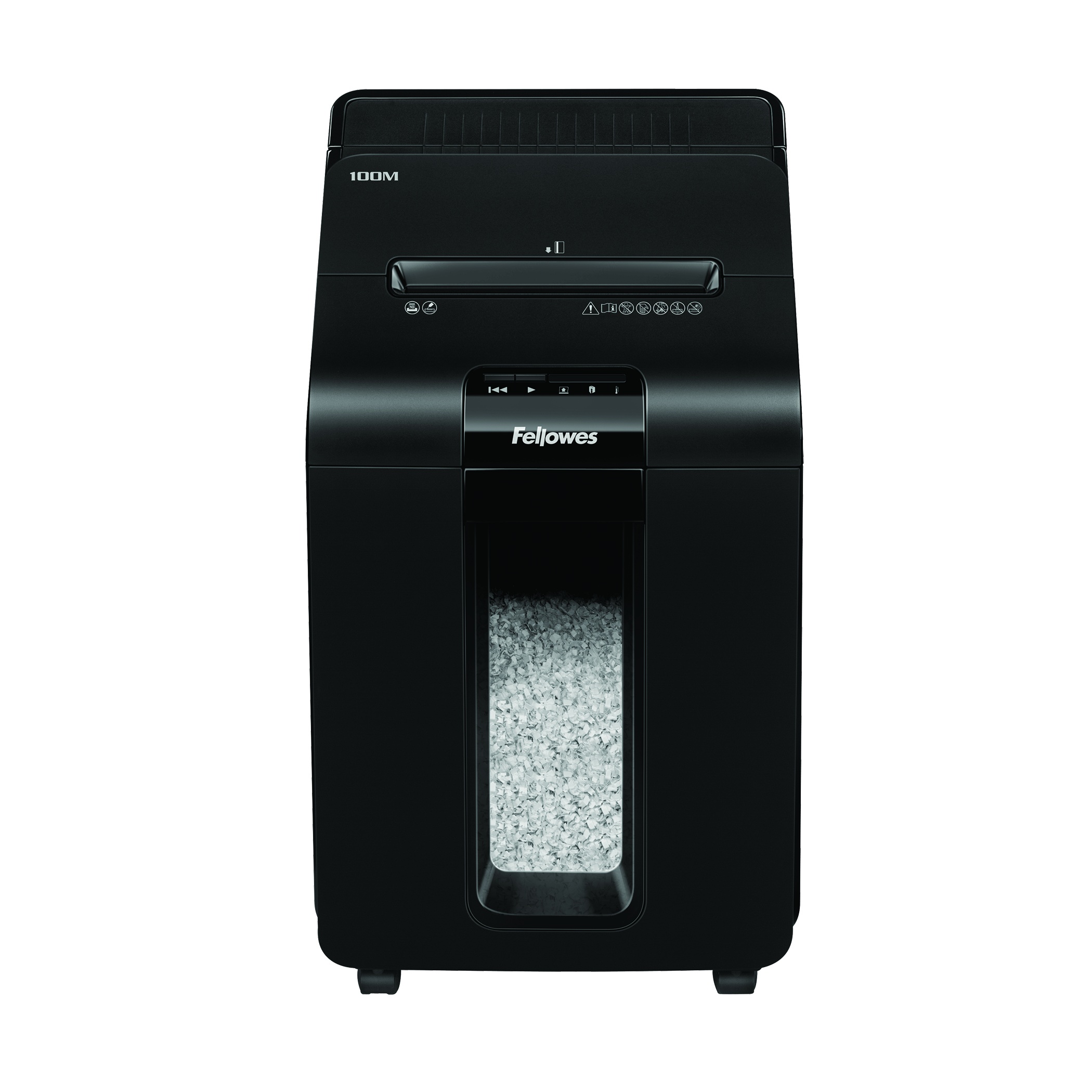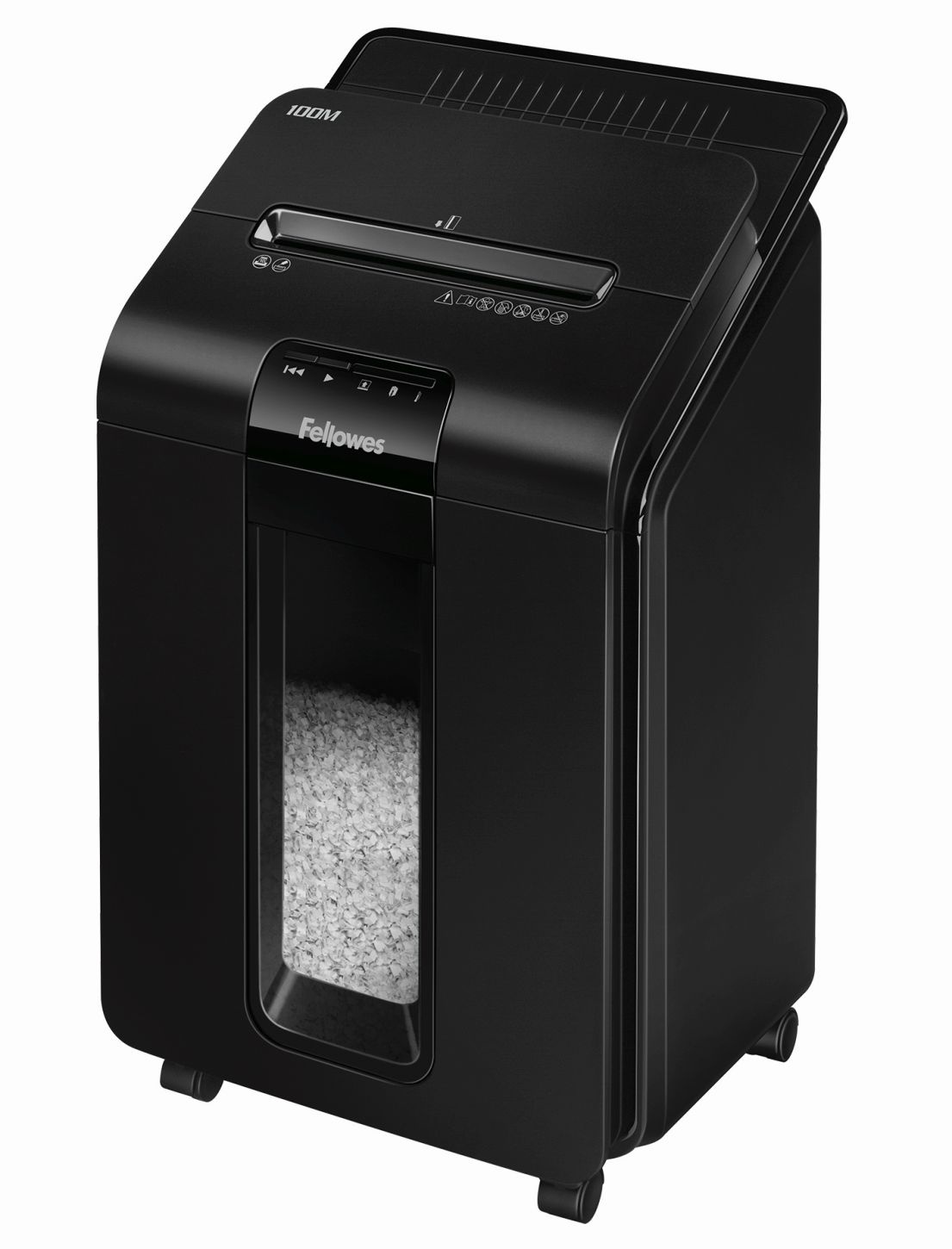Vstupní model z řady automatických skartovačů značky Fellowes. Jen nalož, zapni a běž. Automatický skartovací stroj Vám šetří čas strávený vkládáním skartovaných papírů. Zařízení je schopno na jeden pracovní cyklus při automatickém podávání skartovat až 100 listů 70g papíru v křížovém mikrořezu řezu 4×10 mm. Skartovač je také vybaven vstupní štěrbinou pro ruční podání až 10 listů papíru. Objem odpadního koše 23 litrů. Řezací mechanismus zpracuje při manuálním podávání sešívačkou sešité papíry a kreditní karty. Snadná manipulace se strojem díky pojezdovým kolečkům.