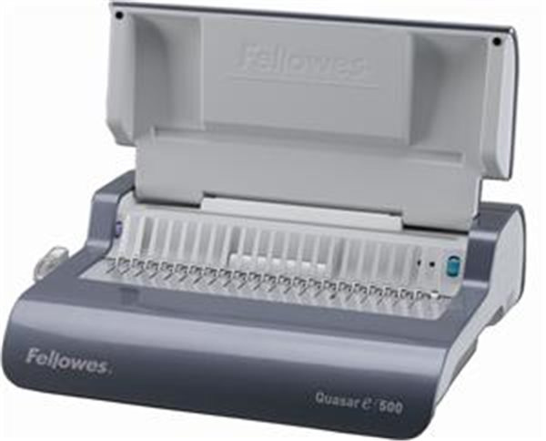 Jedinečné provedení robustního vázacího stroje s uživatelsky samostatně provozovatelnou vázací jednotkou nabízí elektrický model Fellowes Galaxy E. Děrovací kapacita až 20 listů 80g papíru. Kapacita vazby až 500 listů. Možnost nastavení vzdálenosti děr od okraje svazku. Vyřaditelné perforační nože (pro formát A5).