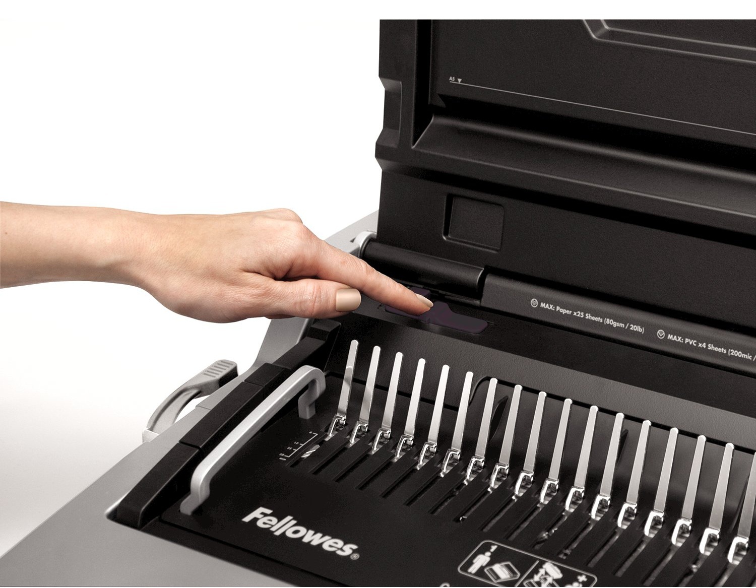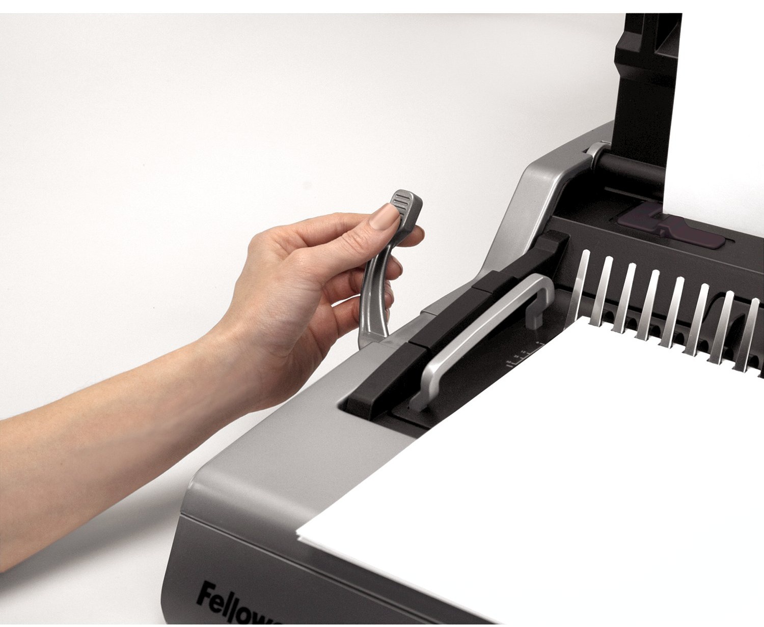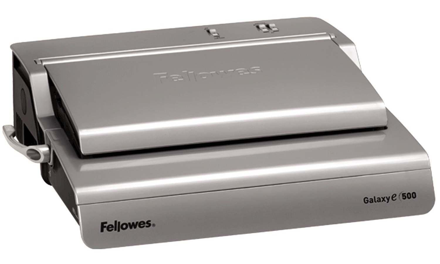 Jedinečné provedení robustního vázacího stroje s uživatelsky samostatně provozovatelnou vázací jednotkou nabízí elektrický model Fellowes Galaxy E. Děrovací kapacita až 28 listů 80g papíru. Kapacita vazby až 500 listů (do průměru hřbetu 50 mm). Možnost nastavení vzdálenosti děr od okraje svazku. Vyřaditelné perforační nože (pro formát A5).