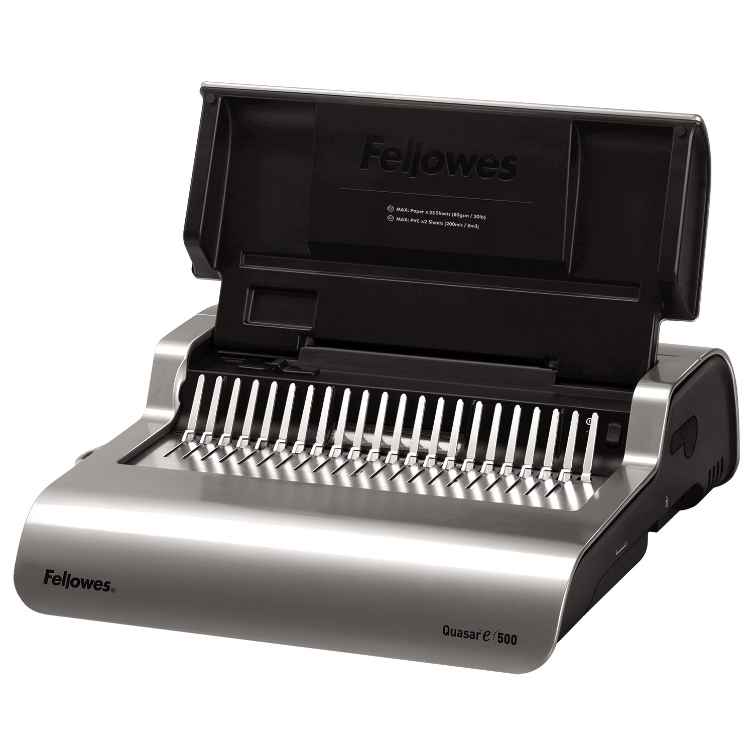 Špičkový design, funkční preciznost a komfortní obsluha jsou vlastnosti tohoto vazače s elektrickým pohonem děrovacího nástroje. Děrovací kapacita až 25 listů 80 g papíru. Kapacita vazby až 500 listů (do průměru hřbetu 50 mm). Je optimální volbou pro komfortní práci při kancelářském použití.