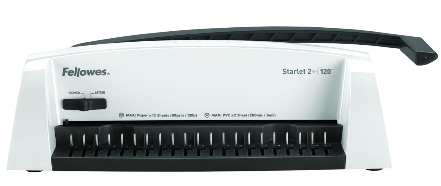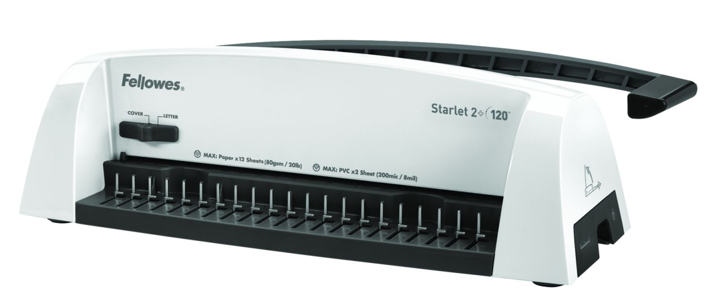 Základní model nové designové řady vázacích strojů Fellowes pro příležitostnou vazbu. Děrovací kapacita až 12 listů 80 g papíru. Kapacita vazby až 120 listů (do průměru hřbetu 16 mm). Vazač má dvě přednastavené pozice – pro děrování formátu A4 a A5.