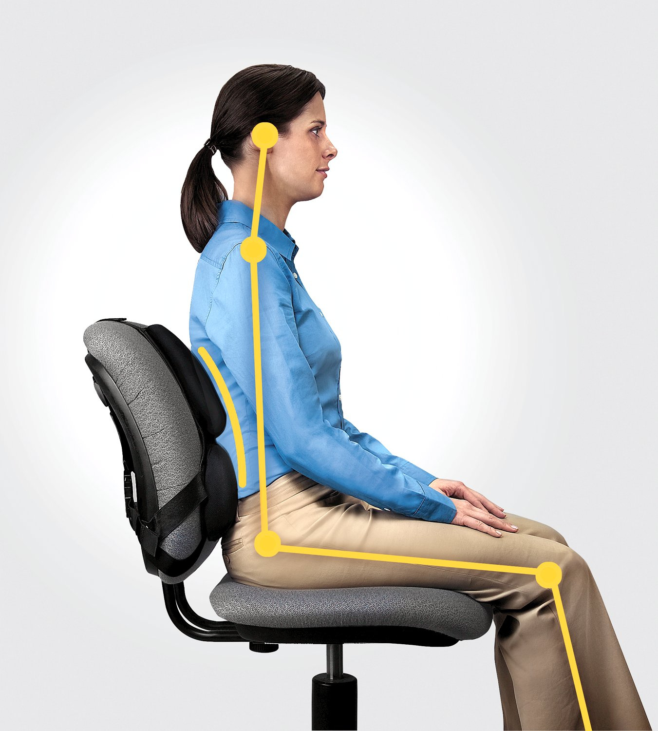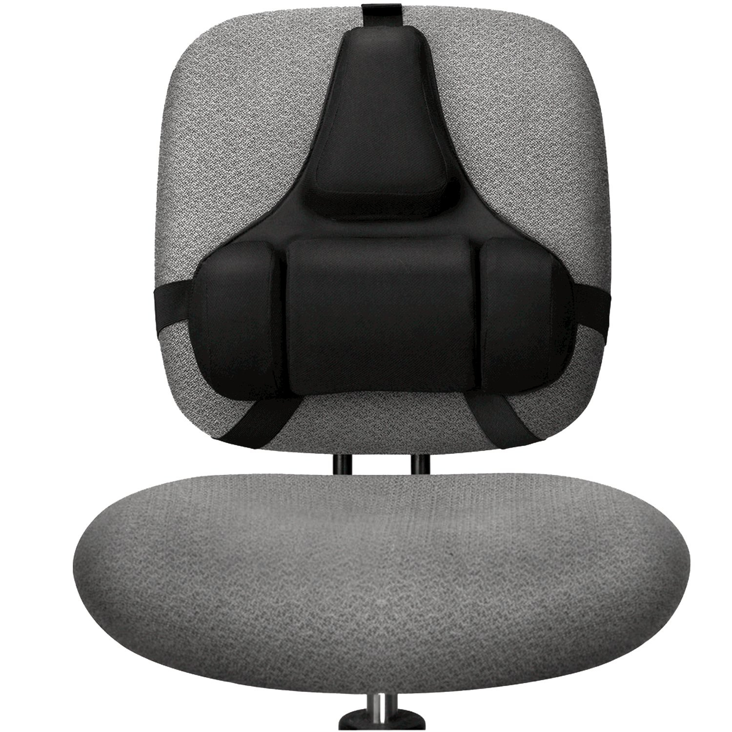 Zádová opěrka zajišťuje správné a pohodlné dlouhodobé sezení. Pomáhá redukovat napětí v zádech a udržuje přirozené zakřivení v dolní části zad. Inovační trojitá fixace zajišťuje stabilitu zavěšení a předchází přesouvání podpěry na židli. Vhodná jako prevence proti bolestem a křivení páteře.