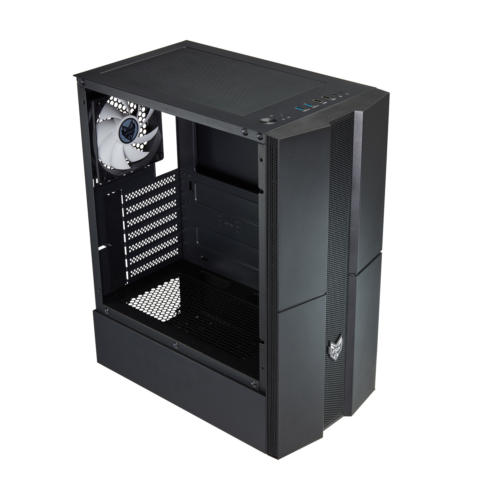 FSP/Fortron ATX Midi Tower CMT270 Black, průhledná bočnice, 1 x A. RGB LED 120 mm ventilátor