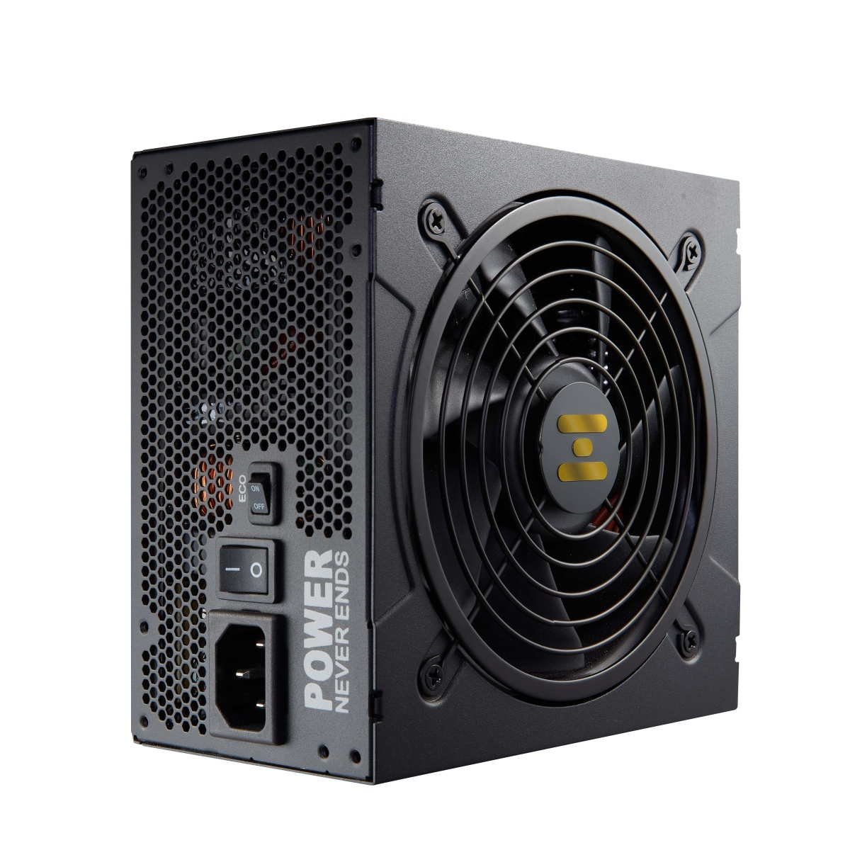 Vypínač „Eco Switch“ umožňuje zdroji pracovat tišeji a s nižší spotřebou energie. Pokud je zatížení zdroje menší než 30 %, zdroj přejde do tichého módu a ventilátor se vypne.