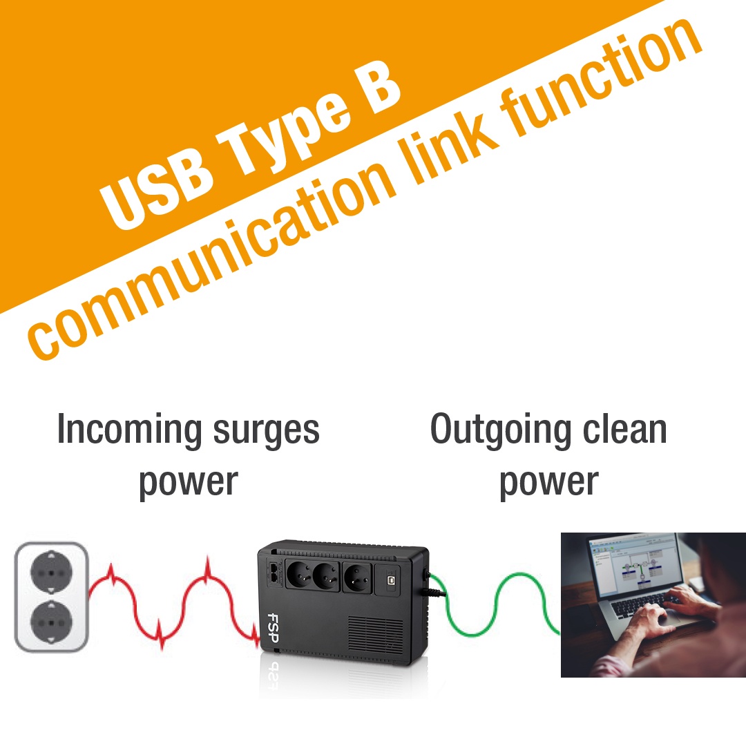 FSP UPS ECO 800 FR, 800 VA / 480 W, USB, RJ45, line interactive