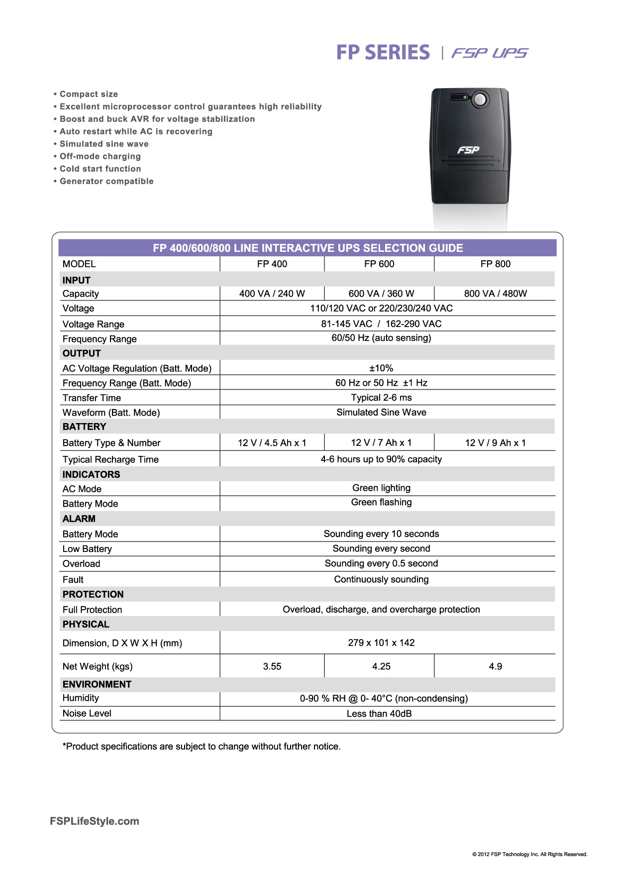 FSP UPS FP 600, 600 VA / 360 W, line interactive