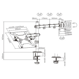 Suggested desktop thickness: clamp: 10 ~ 85 mm, grommet: 10 ~ 40 mm
