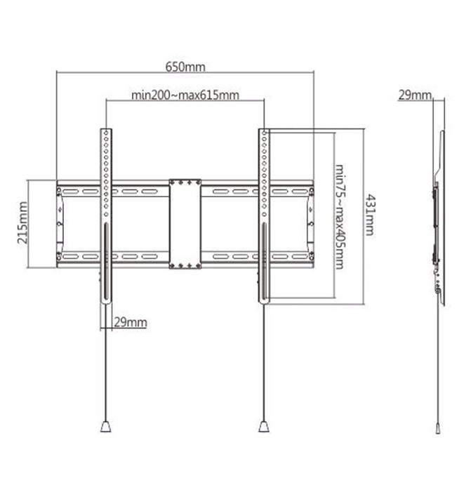 Vesa compatible: 200x200, 300x200, 400x200, 300x300, 400x300, 400x400, 600x400 mm