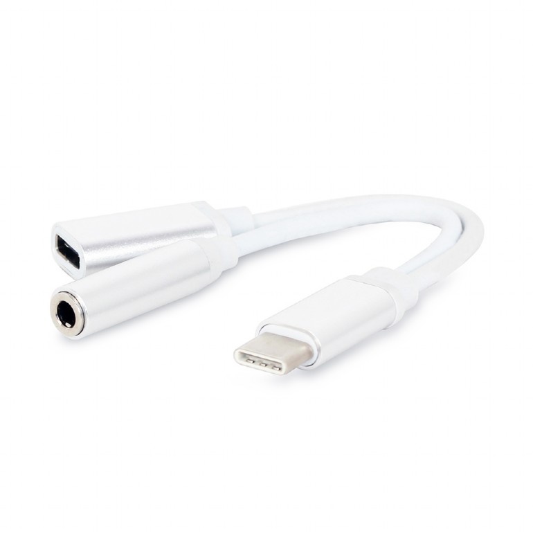 GEMBIRD USB type-C plug to stereo 3.5 mm audio adapter cable, with extra power socket, white