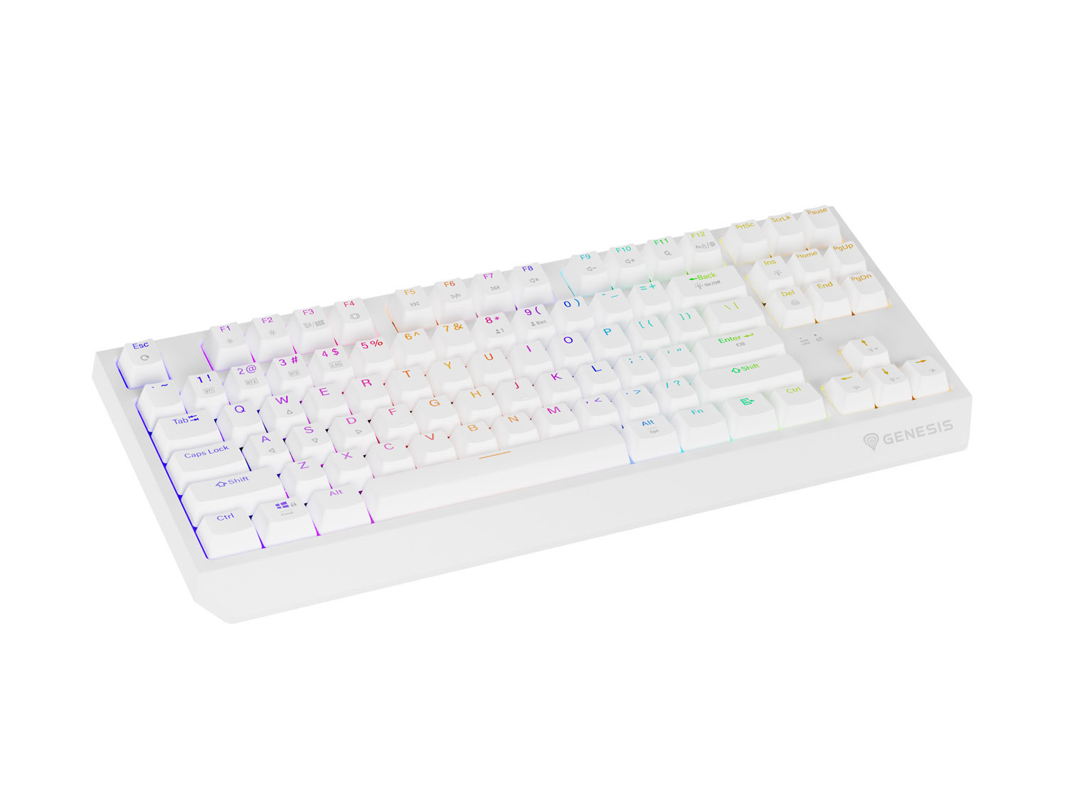 GENESIS herní klávesnice THOR 230/TKL/RGB/Outemu Red/Bezdrátová USB + Bluetooth/US layout/Bílá